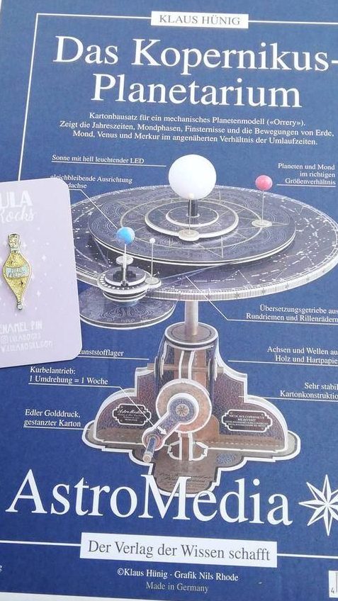 The Kopernikus-Planetarium by is a DIY paper model for 47,50 € where you build your own functioning orrery—a mechanical model of the solar system. The official description that you can also find when buying it is as follows: