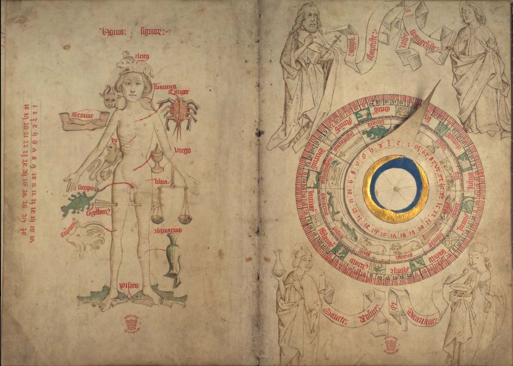The volvelle operates through its movable discs, each inscribed with various scales for different purposes, such as the zodiac, hours of the day, or positions of the planets. By rotating the discs, users can align specific scales to determine important calculations, like the phase of the moon, the best times for planting crops, or the alignment of the stars for navigation.